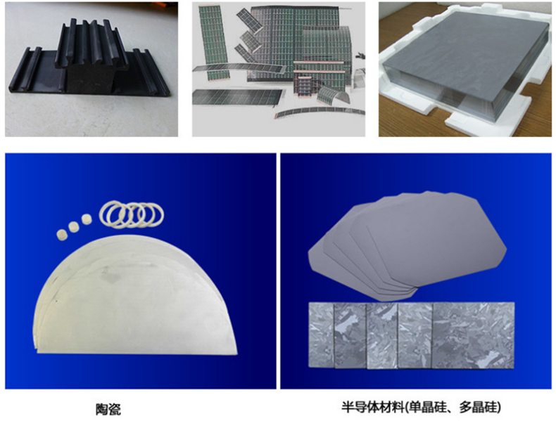本加工方法是對(duì)電火花切割機(jī)床難以加工的不導(dǎo)電材料的補(bǔ)充。原則上對(duì)導(dǎo)電和不材料只要硬度比砂線小均可加工,對(duì)用電火花線切割機(jī)床加工難以加工的石墨材料,采用本產(chǎn)品加工尤能顯示其無(wú)比的優(yōu)越性;對(duì)脆性材料如注塑泡沫材料、復(fù)合材料、陶瓷、環(huán)氧板、鐵氧板、半導(dǎo)體材料、碳化硅、耐火磚、非導(dǎo)電材料等具有一定脆性材料的成型切割均可加工。